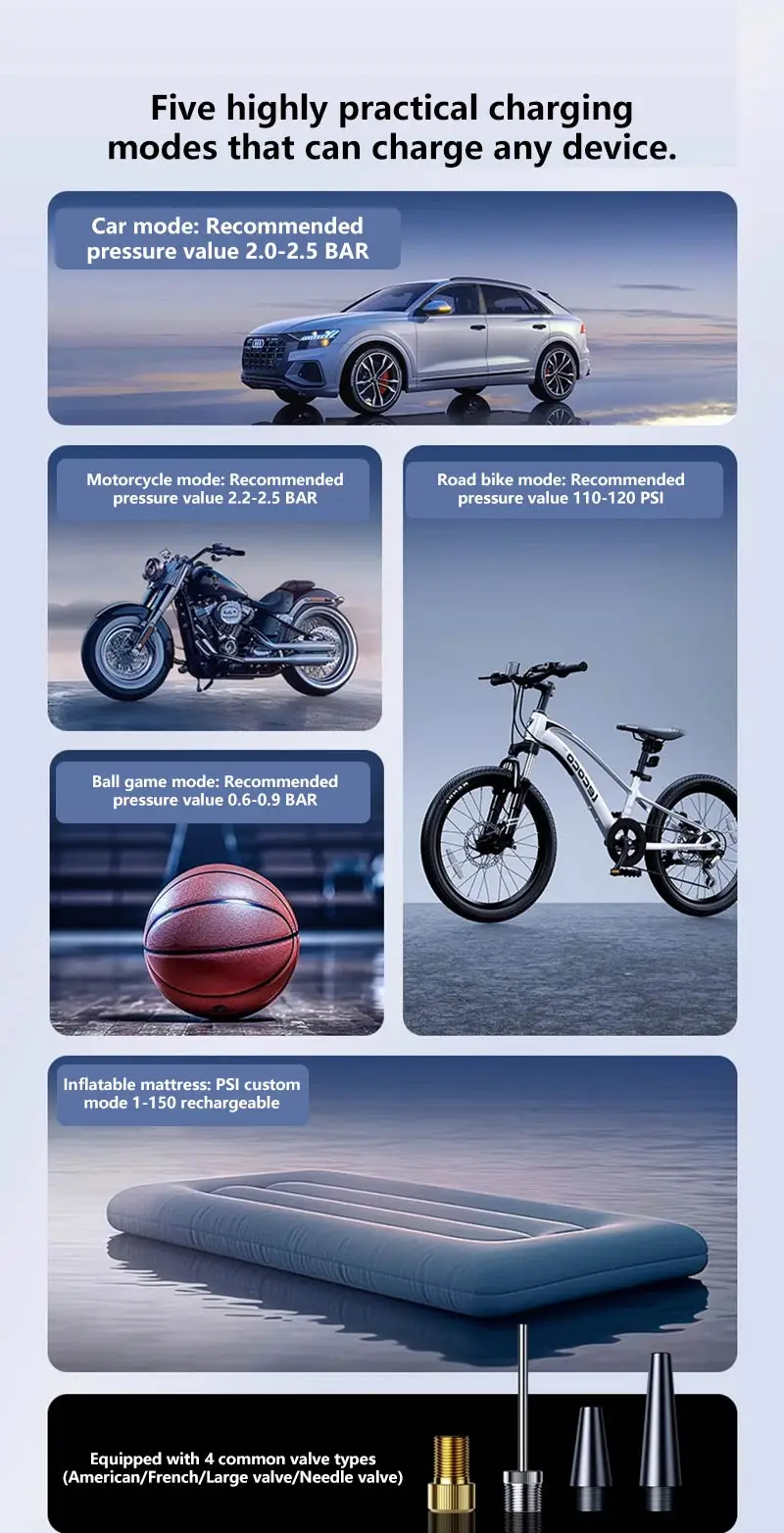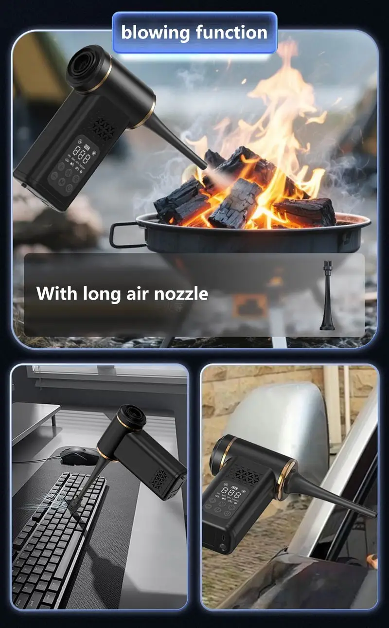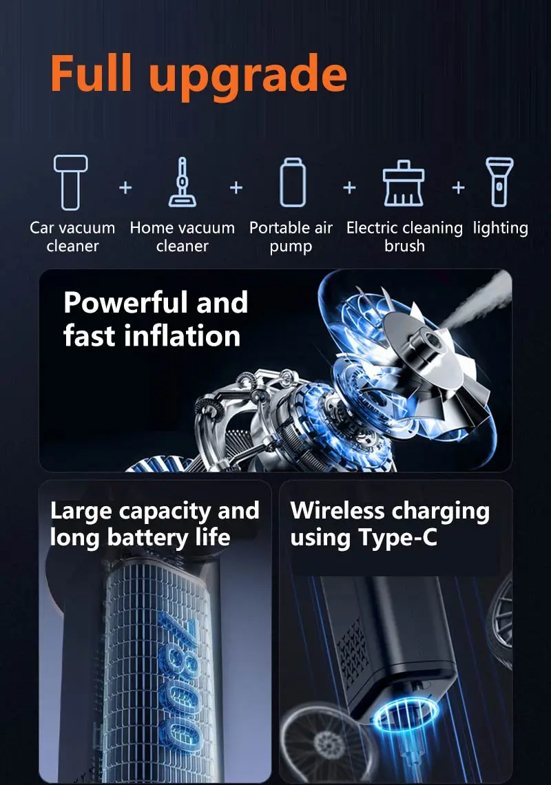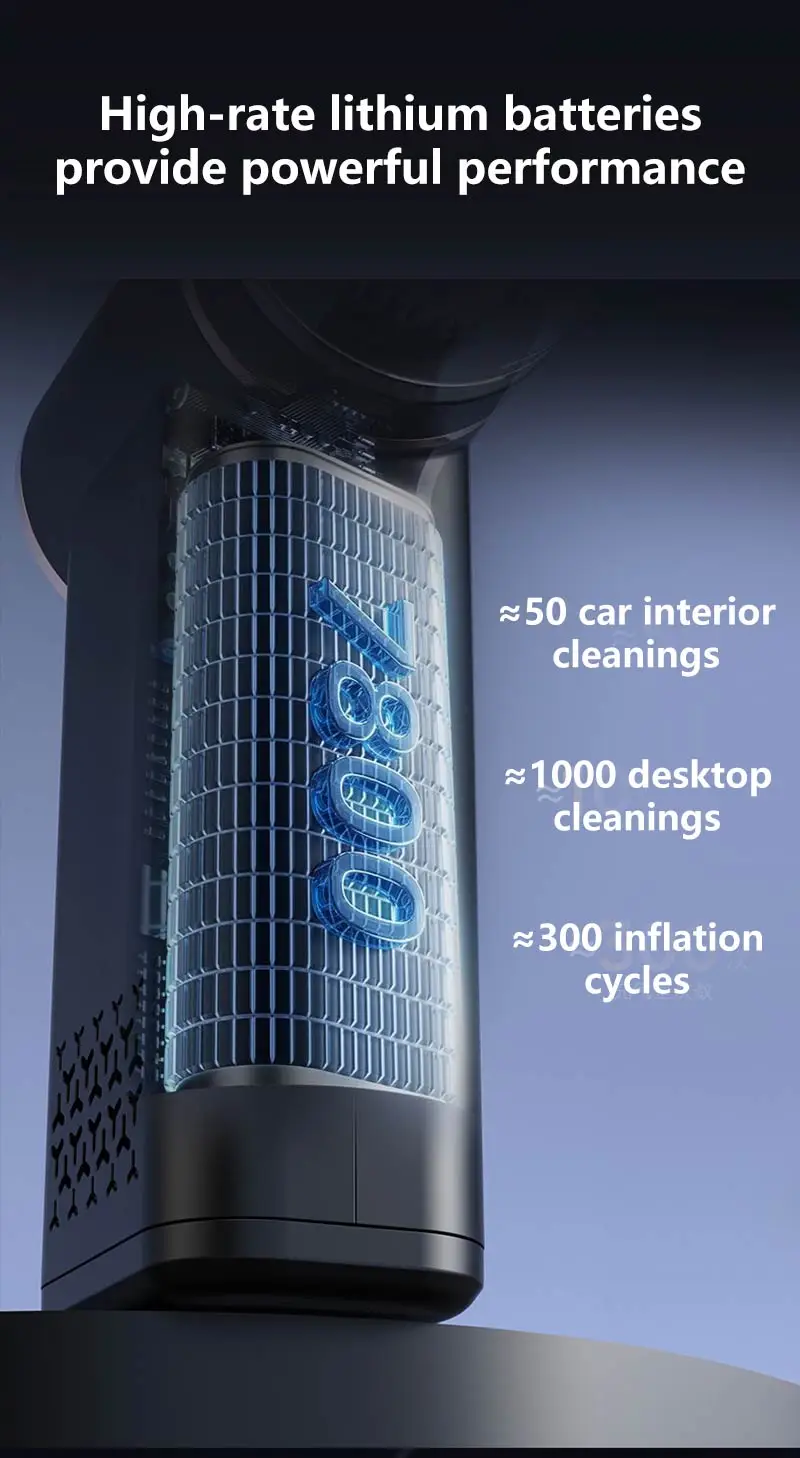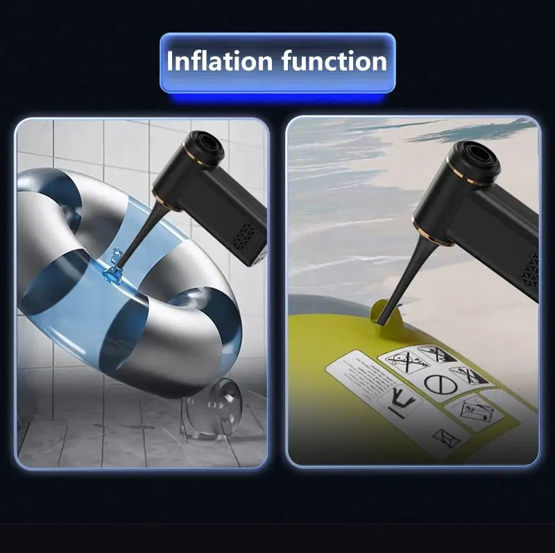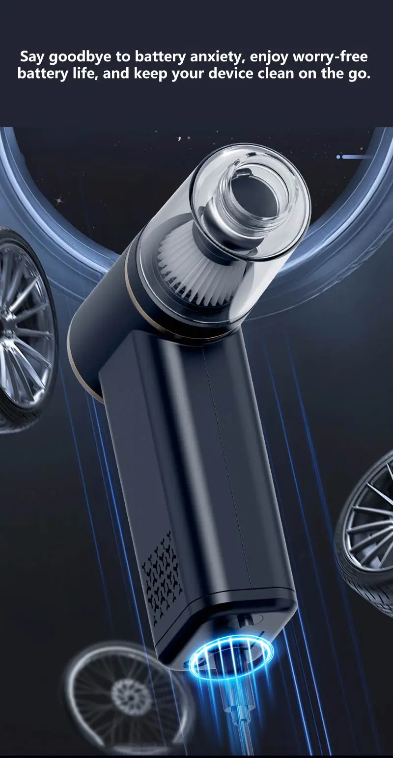 VaxaPump™ Pro is a high-performance car tire inflator featuring an intelligent auto-shutoff system and a precise digital pressure gauge to ensure your safety on every road. This versatile 5-in-1 tool is also a powerful cordless vacuum, perfect for deep-cleaning your car interior, and features an air blowing function to easily dust off electronics or inflate air mattresses. Complete with a multi-mode LED lighting system for nighttime emergencies, it is the ultimate compact and portable solution for every driver.